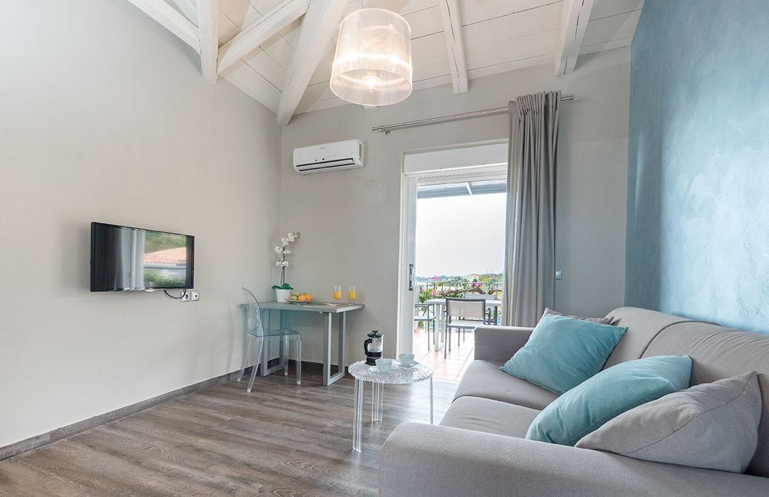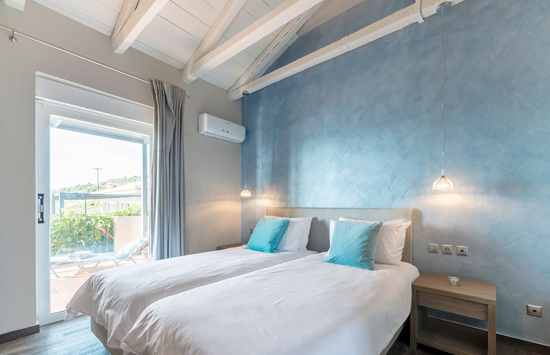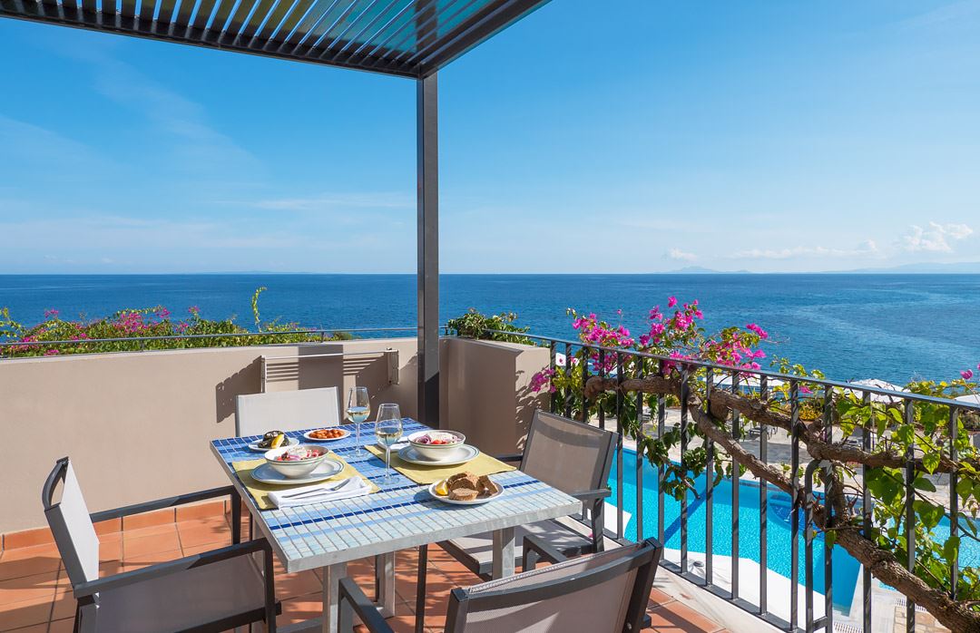 The Atros mist suite is located on the first floor with a 20m² balcony and sea view.