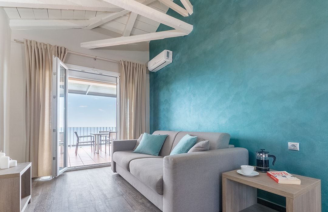 Melissani lake suite is a 33m² suite with a 20m² balcony and sea view's.