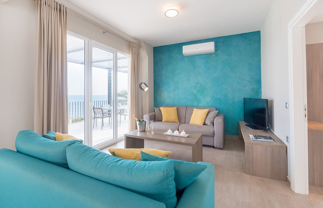 Open-plan living/dining/kitchenette (suitable for light snacks and salads) with 2-ring hob, fridge, TV (English speaking news channels)