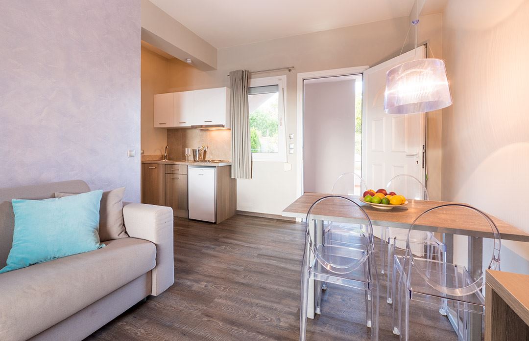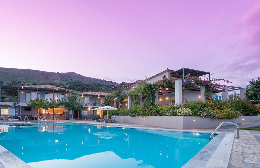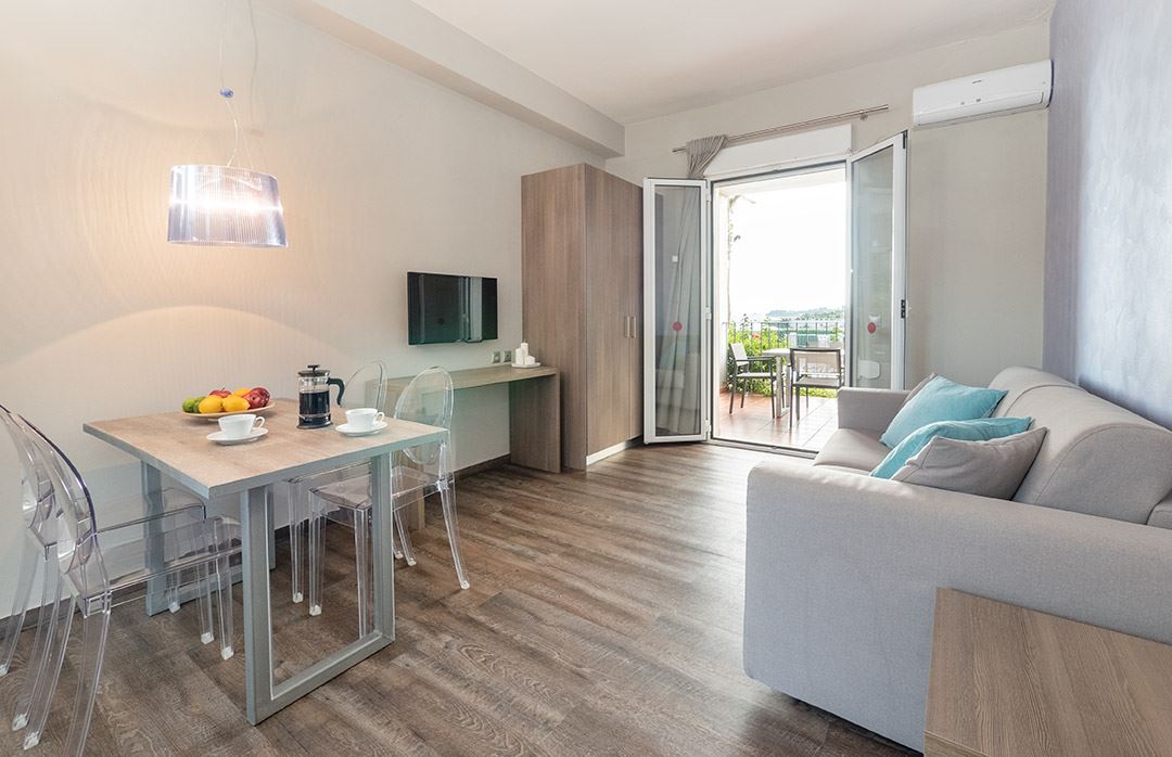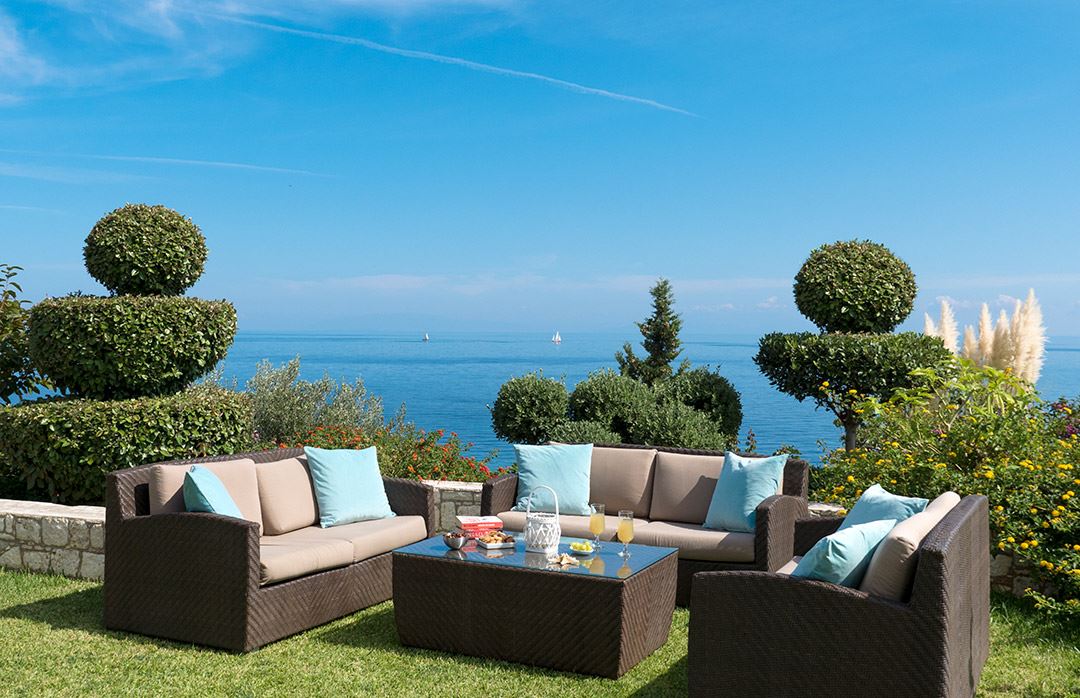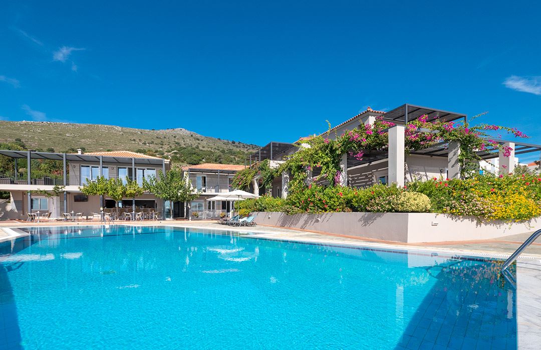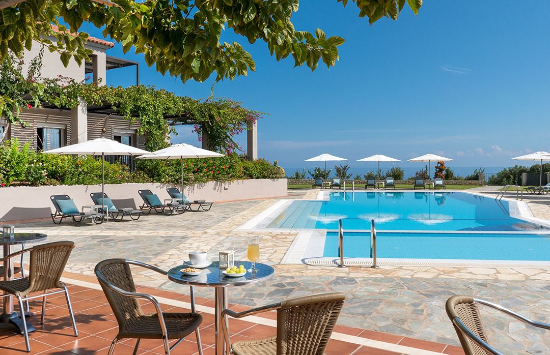 The Skala Dawn suite is situated on the ground floor and has both a pool and sea view with a large balcony.